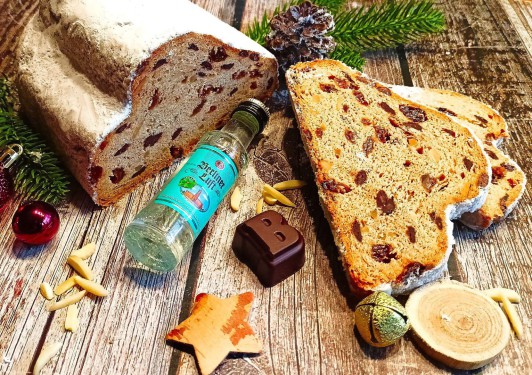 DINKELMEHL 630, Rosinen, BUTTERFETT (laktosefrei), VOLLMILCH, Zartbitter Schockolade, MANDEL (gestiftelt und geröstet), Kristallzucker, Hefe, Berliner LUFT(Minz Likör), Orangat, MARZIPAN, Honig, frische EIER, Salz, Vanillinzucker, Zimt, CARDAMOM, Koriander, Fenchel, Kümmel, Anis, Muskat, Gewürznelken.