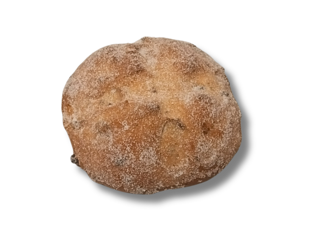 Wasser, DINKELMEHL 630, hauseigener Dinkelsauerteig, BUTTERFETT (laktosefrei), Speisequark, Zucker, frische regionale Eier, Salz, Hefe, Mandel gestiftelt, Sultaninen, hauseigene Gewürzmischung (Zimt, Cardamon, Koriander, Fenchel, Anis, Muskat, Gewürznelken)